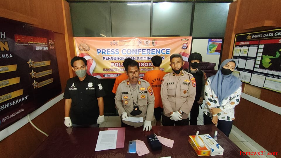 Berikut juga terlihat Kapolsek Cisoka Akp Nurorokhman T SH pada saat Press Conference, yang disaksikan beberapa awak media. Terkait penipuan atau penggelapan pelaku A.