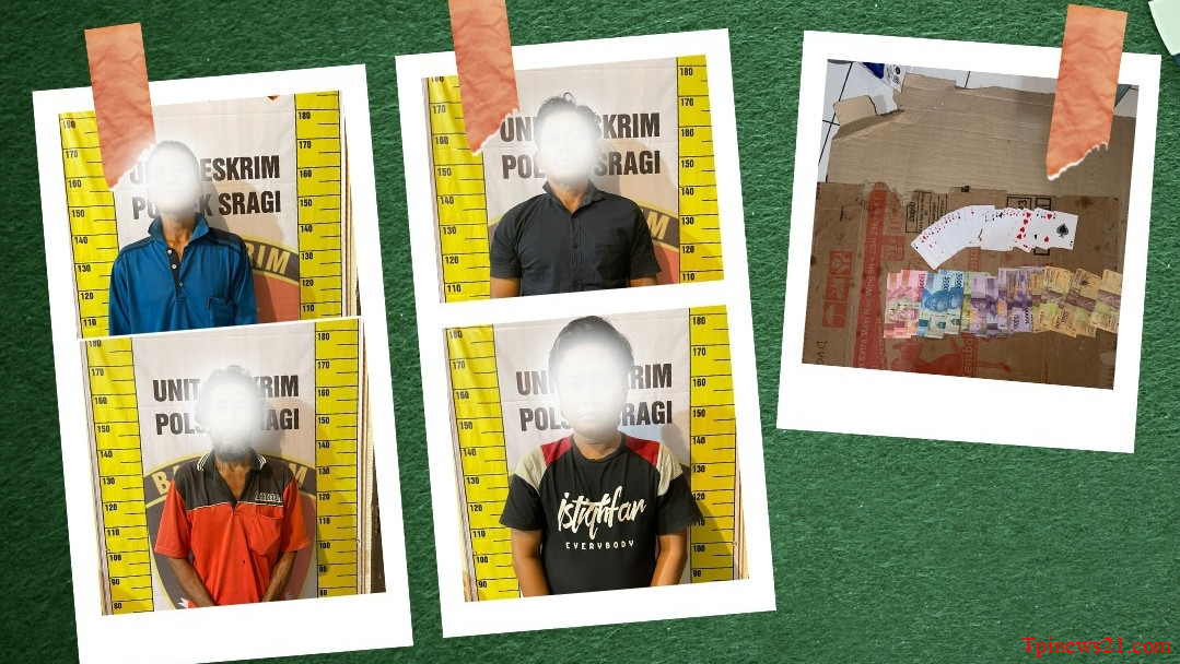“ Benar, petugas Reskrim Polsek Sragi berhasil mengamankan empat pelaku judi kartu remi jenis “Tyongpi,” RMD (61), RHT (55), RHN (51) dan T (43). Semuanya merupakan warga Krasakageng Kecamatan Sragi ” ujarnya.