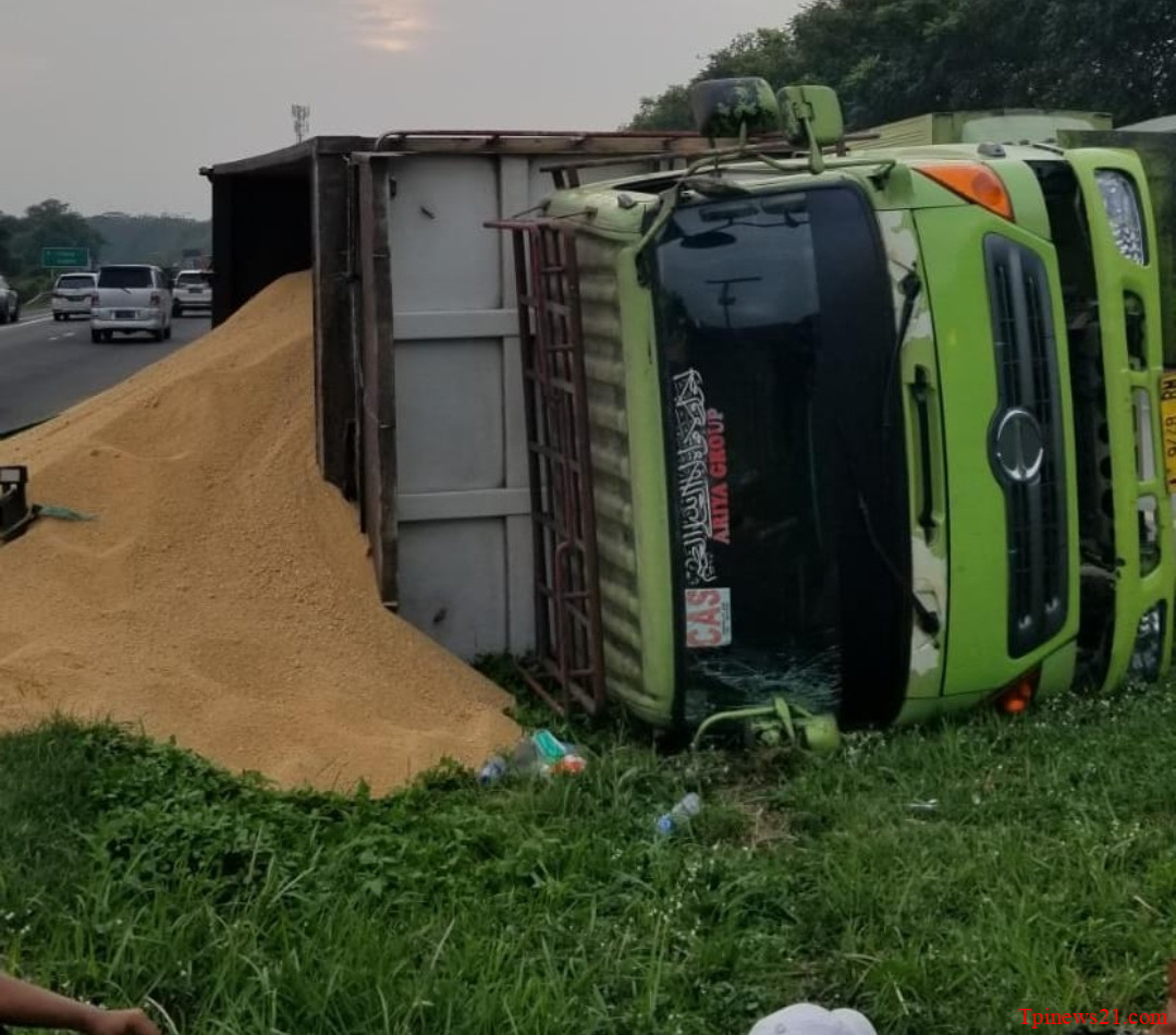 ” Awalnya dump truck tersebut dari Merak menuju Tangerang. Kemudian dari pengakuan pengemudi setibanya di TKP kurang jaga jarak menghindari kendaran kecil yang berhenti mendadak lalu banting setir ke kanan hingga median dengan posisi akhir kendaraan terbalik miring dengan kedua roda kiri diatas menghadap timur median ” kata Budi.