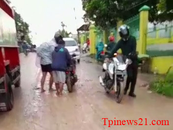“Di Jalan tersebut ada urugan rumah warga, hujan pagi hari membuat jalanan licin karena ada tanah merah yang berceceran, akibatnya tadi pagi ada beberapa pengguna jalan roda dua terjatuh,” Ujar Supendi Komandan Pos Tigaraksa.
