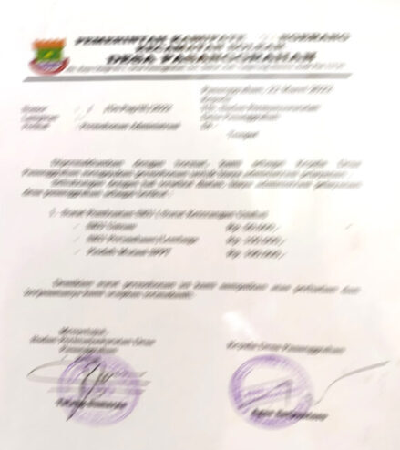 Tpinews21.com, Kabupaten Tangerang | Pungutan biaya administrasi di Desa Pasanggrahan Kecamatan Solear Kabupaten Tangerang pada Maret 2022 mencapai 1,4 Juta rupiah.
